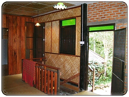 ชั้นล่างก่ออิฐถือปูน หลังบ้านติดลำธารน้ำบนดอยสูง