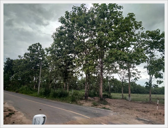 มีต้นสักปลูกไว้เป็นแนวรั๊วหลายสิบต้น