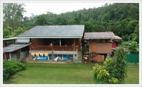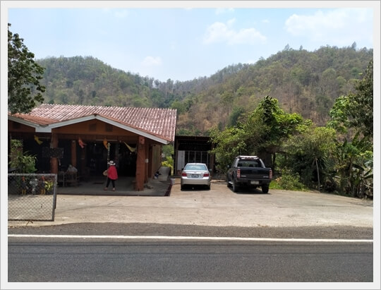 チェンマイのマエタンにあるマエタマンへの道にある、農園のある家。